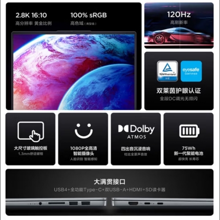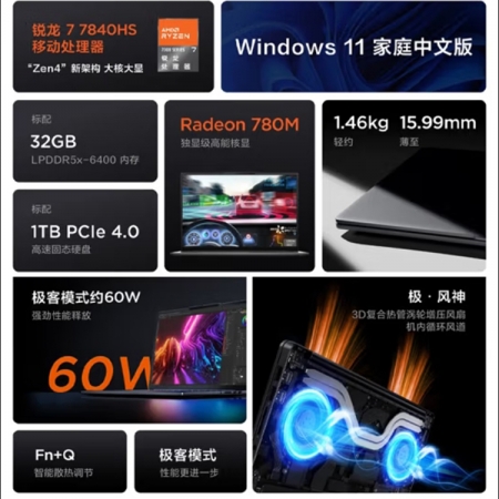 联想(Lenovo) 小新Pro14 超能本 旗舰锐龙版 14英寸轻薄笔记本电脑 R7-7840HS 32G 1T 2.8K 鸽子灰