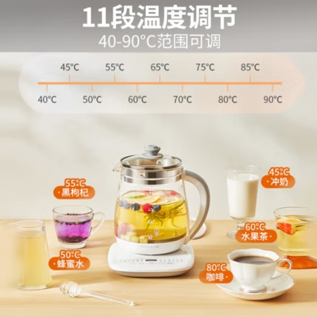 九阳(Joyoung)养生壶迷你玻璃花茶壶煮茶器 12大功能11档温度 电水壶热水壶烧水壶 恒温水壶1.5L DGD1506BQ